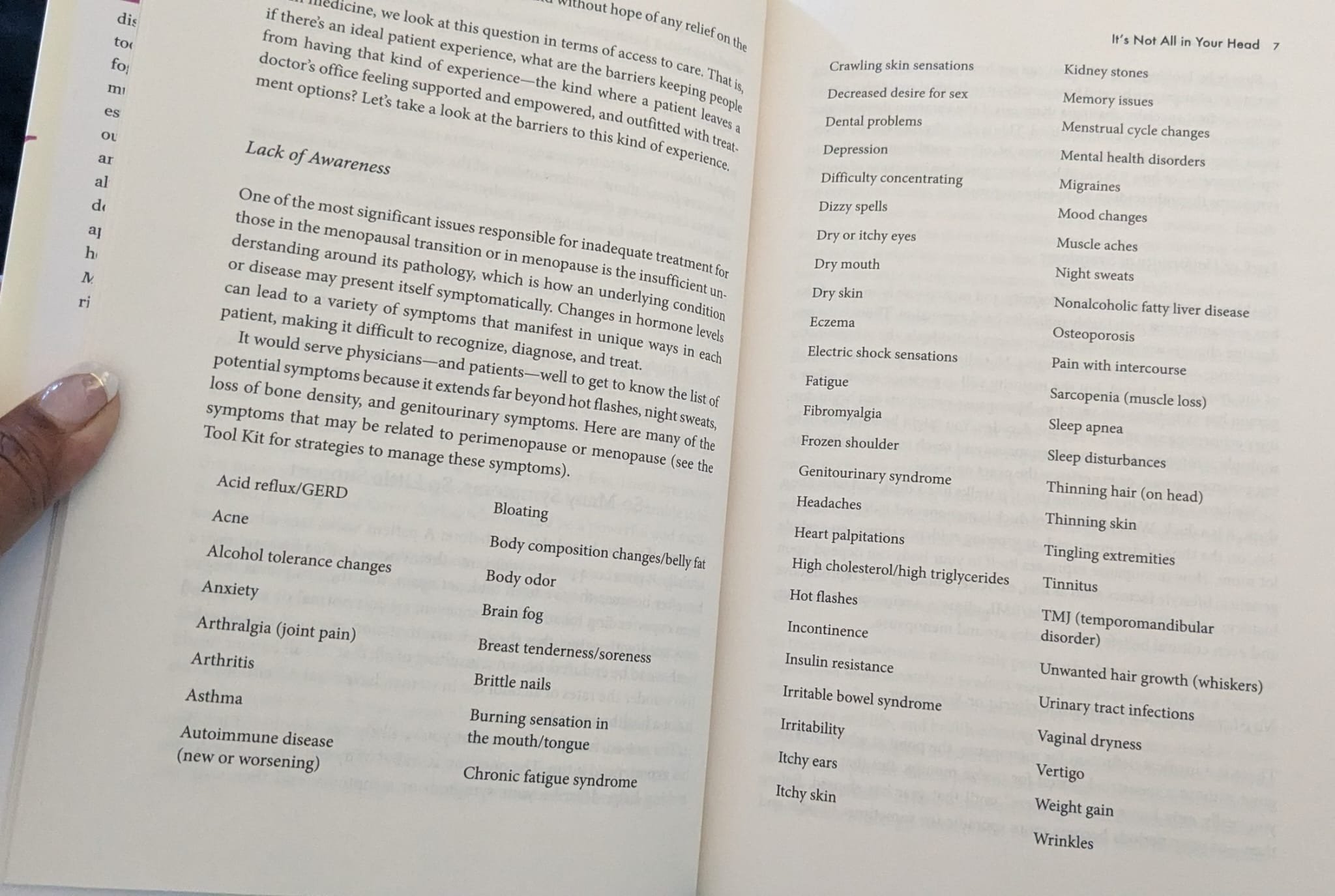 A few pages of symptoms from the book “The New Menopause” by Dr. Marie Claire Haver.