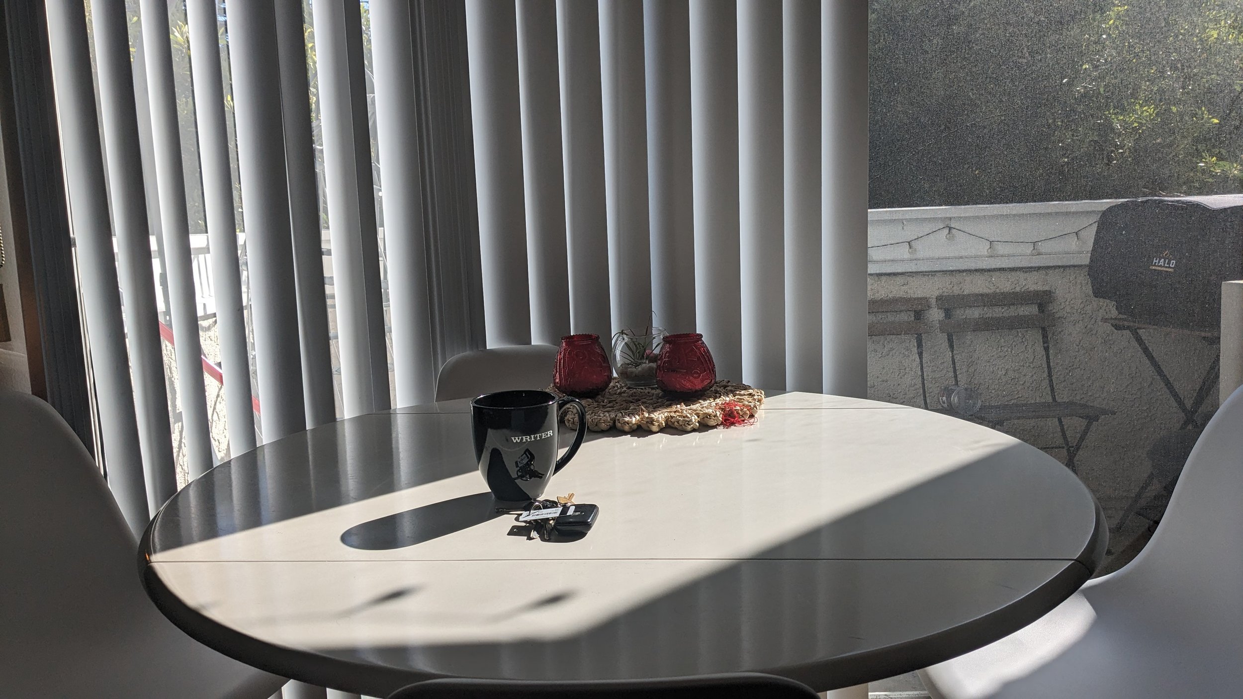 My first meeting ends so I turn my focus to our cat’s barf. His signature is three barfs and because it's dried from a few days of sitting while we were away, I need to soak each one. Soaking and wiping while I'm making myself coffee, peanut butter toast and trying to breathe a little deeper to quell the feeling of overwhelm.